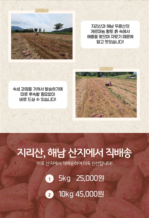 지리산, 해남 두륜산 게르마늄 황토흙에서 자란 두레꿀고구마