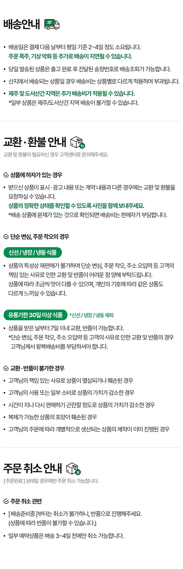 · 배송비 : 4,000원(15개 마다 기본배송비 반복 부과) (장바구니 묶음배송 가능)