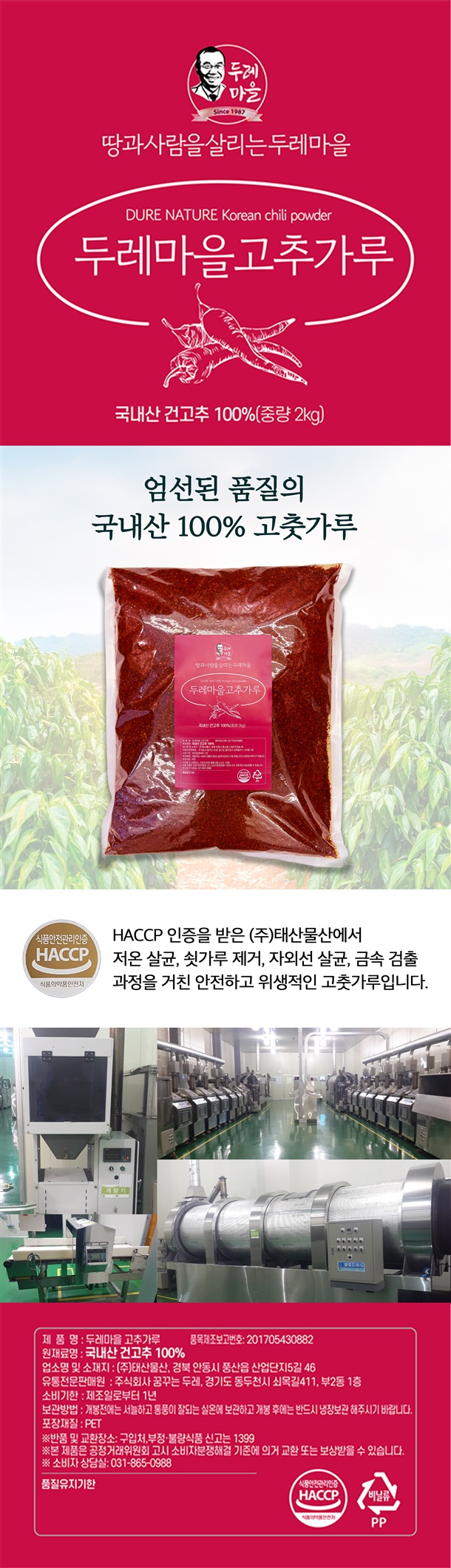 김장용 두레마을고추가루 2kg